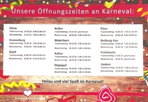 • Öffnungszeiten Karneval 202611. Februar 2026 - 9:55