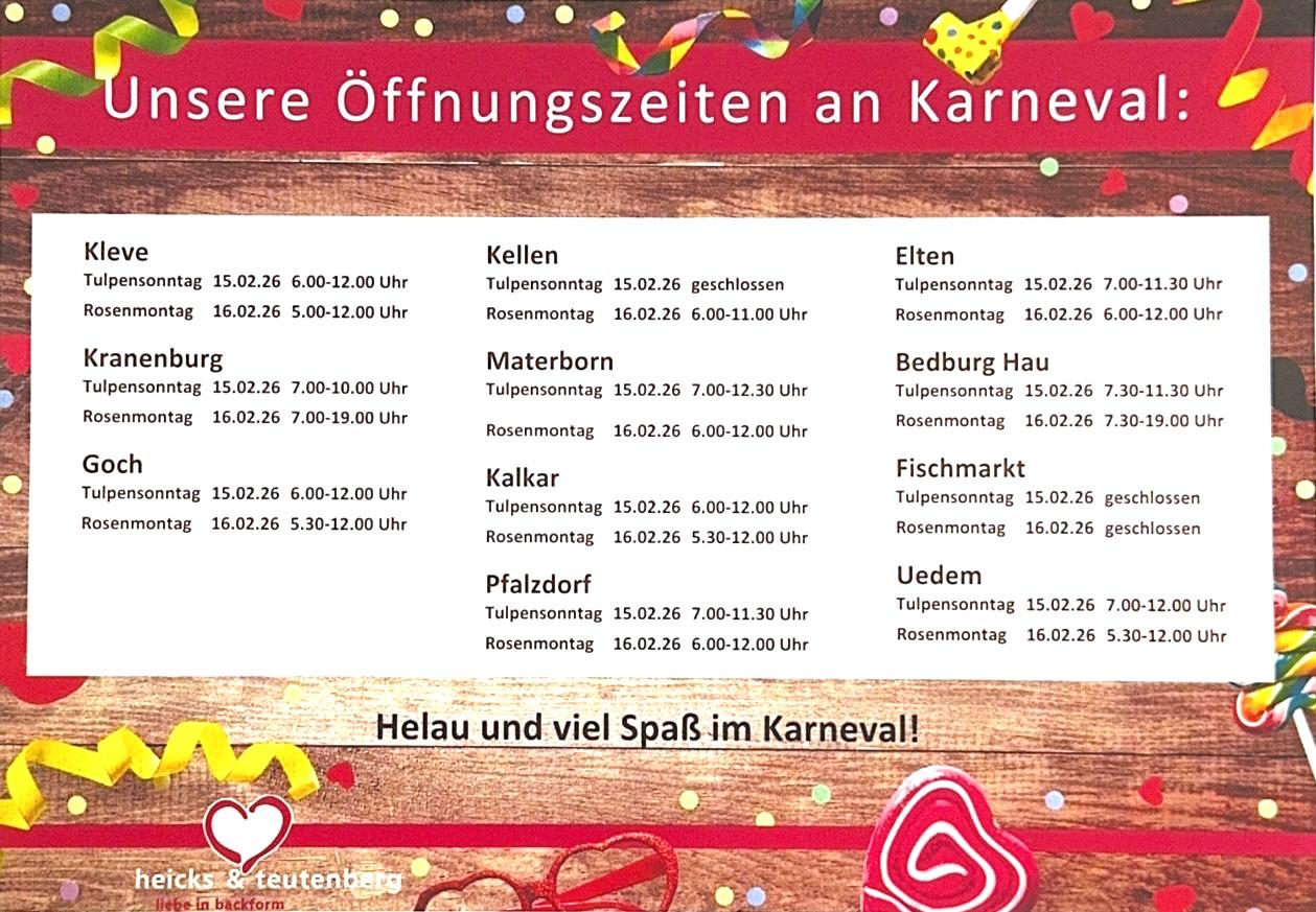 • Öffnungszeiten Karneval 2026