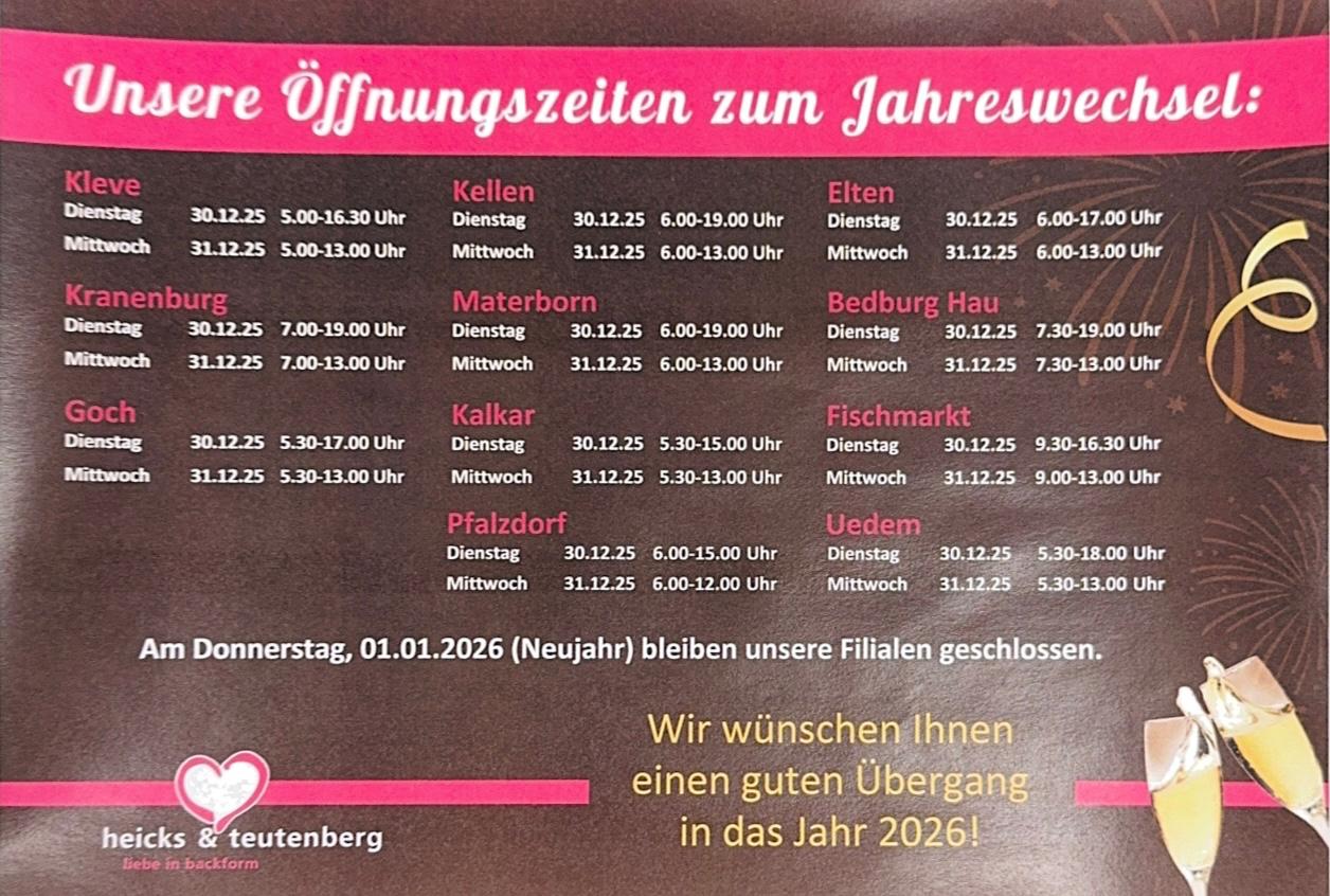 • Öffnungszeiten Silvester 202629. Dezember 2025 - 12:56